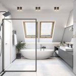 Jaka może być nowoczesna łazienka? Gustownie urządzona, przestronna, dobrze doświetlona, z minimalną liczbą niezbędnych sprzętów zapewniających komfort. Elegancka i zarazem bardzo funkcjonalna. Wszystkie te cechy posiada łazienka na prezentowanej aranżacji.