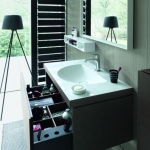 Aby spełnić najwyższe standardy wzornictwa w łazience, Duravit opracował nową, prawdziwie innowacyjną metodę c-bonded, podczas której umywalka meblowa w skutek złożonego procesu łączy się w sposób niezauważalny z szafką podumywalkową.